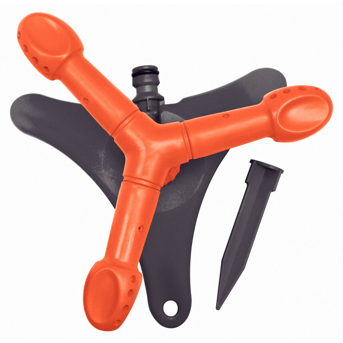 - Equipado com 3 braços rotativos em plástico, com terminais ajustáveis para direcionar o jato d''água.